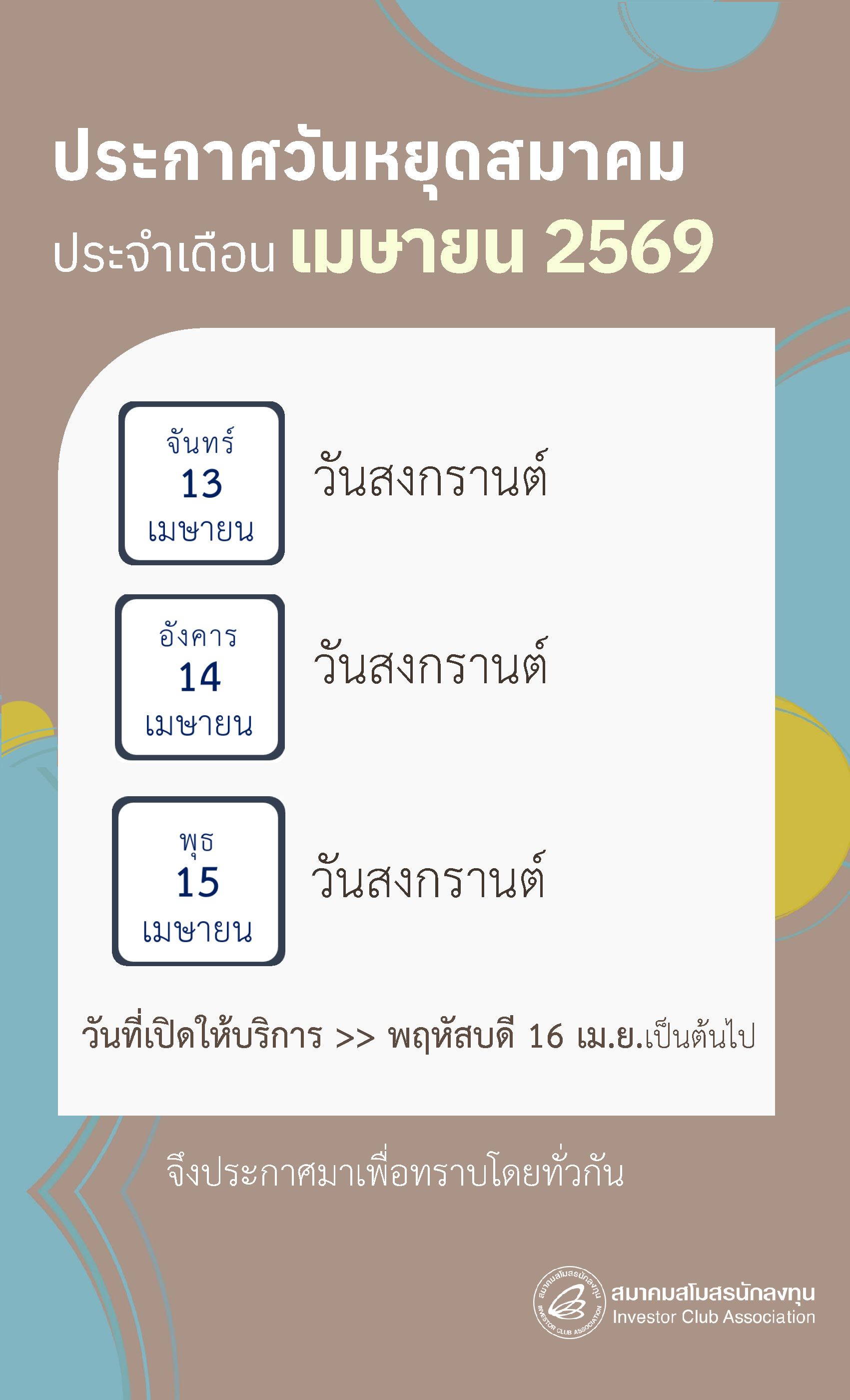 ** ทั้งนี้ หากมีการเปลี่ยนแปลงหรือหยุดให้บริการ สมาคมจะแจ้งให้ทราบล่วงหน้าเป็นกรณีไป **